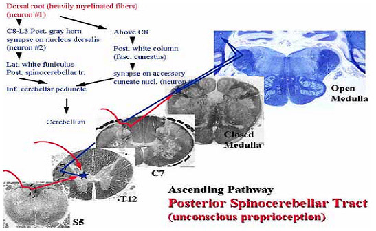 • Information that travels in the spinocerebellar tracts is not consciously perceived